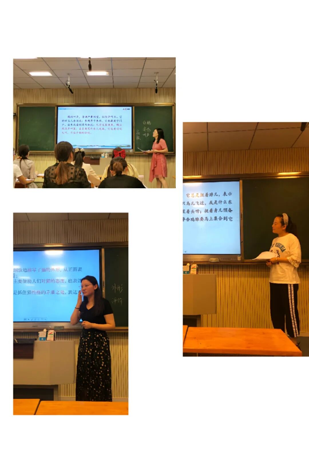何婷老师执教的是《母鸡》一文,她关注学生朗读,指导学习方法,有的放矢、教学扎实,圆满完成目标。吴文霞老师执教《白鹅》一课,她紧扣“高傲”一词,引导学生感受白鹅特点,最后,结合“鹅老爷”等细节以及写作背景,让大家感受丰子恺老先生对白鹅的喜爱。整节课情文交融,层层递进。